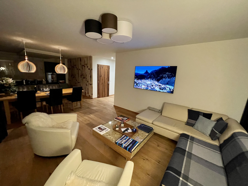 125m2 with Matterhorn view from all rooms, luxury bedding, kitchen from a former 2 Michelin star chef, large balcony and terrace, directly accessible with Elektro Taxi.